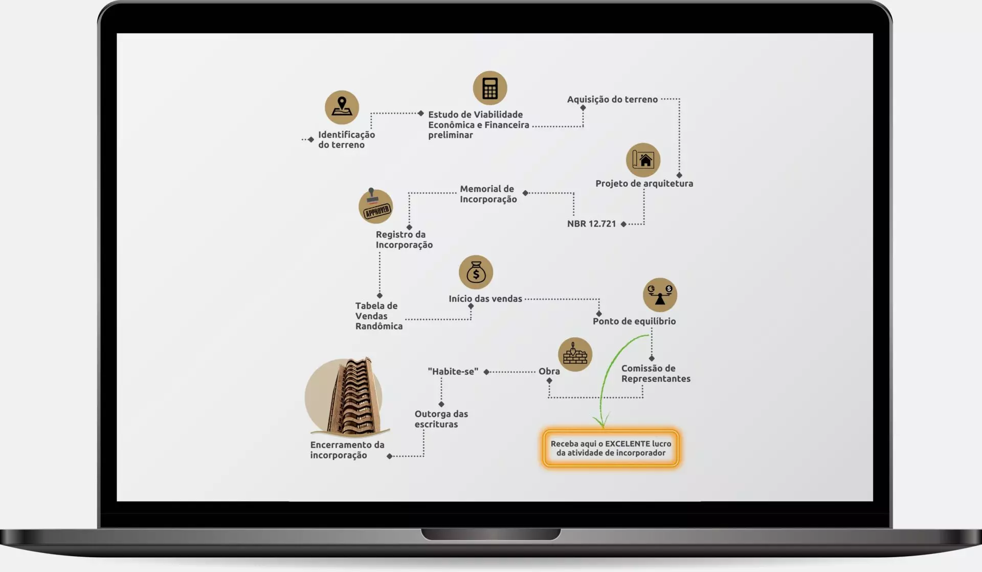 Será apresentado o passo a passo, desde o instante zero com a compra do terreno até o encerramento da obra e da incorporação, ressaltando todos os mecanismos de fomento às vendas, para que você seja um empreendedor de sucesso!